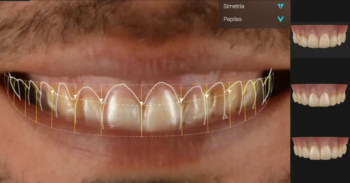El software analiza proporciones faciales, línea de la sonrisa, forma dental y simetría, detectando posibles desequilibrios estéticos que a simple vista pasan desapercibidos.